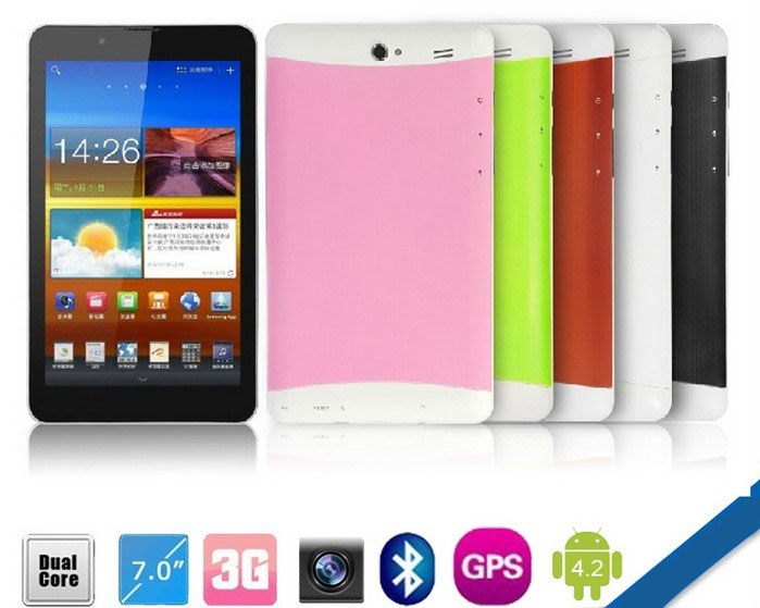 7inch tablet pc with MTK6572 dual core CPU,2G/3G dual Sim card,bluetooth,FM,HDMI,GPS